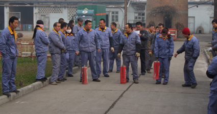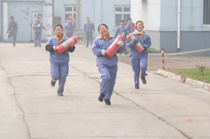 上午八时三十分,寂静的厂区突然响起了警铃,随着警铃的长鸣,正在工作的员工迅速从各自岗位撤离到安全地带。接着厂安全员对员工进行了消防安全培训,讲解了灭火器的种类、使用方法和注意事项,现场进行了消防演练和消防接力赛。通过这次活动的开展,检查了员工的消防实际操作技能和应激反应能力,增强了员工的安全意识和防范能力。