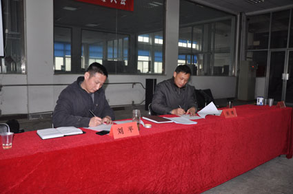 会议表彰了2013年度先进个人,先进代表做表态发言。考核兑现了2013年度安全保证金,公司总经理与各管理部门签订了2014年度安全责任状。
