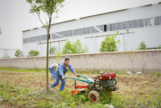 ,涂料厂李猛等同志用小型拖拉机对厂区绿化带进行耙地,清理杂草。